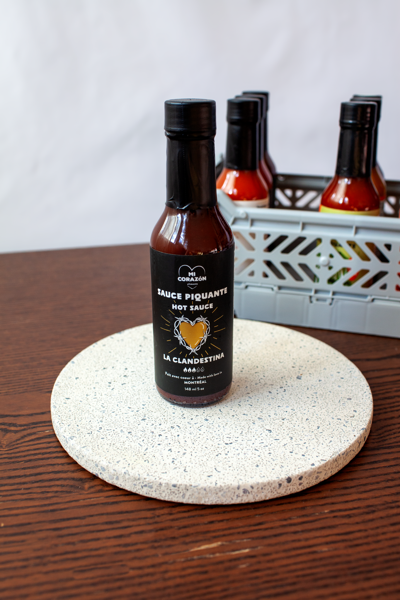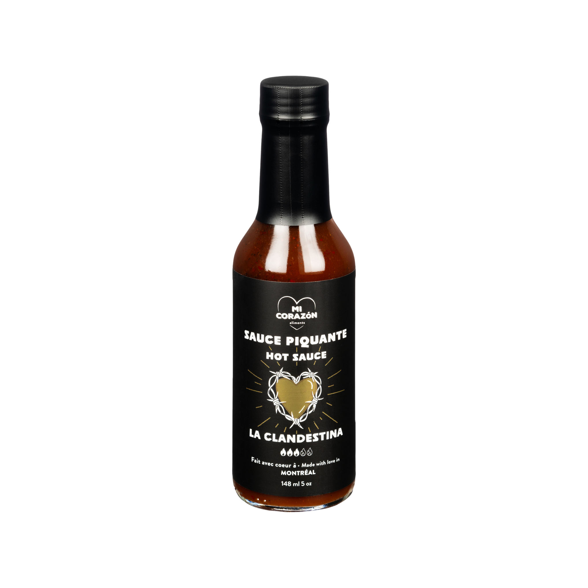 Sauce piquante inspirée des saveurs du Mexique, la clandestina apporte un goût parfaitement équilibré, avec une touche d'acidité et de piquant. Nous la comparons souvent à la fameuse sauce piquante Valentina, mais réalisée fièrement à partir de piments québécois.